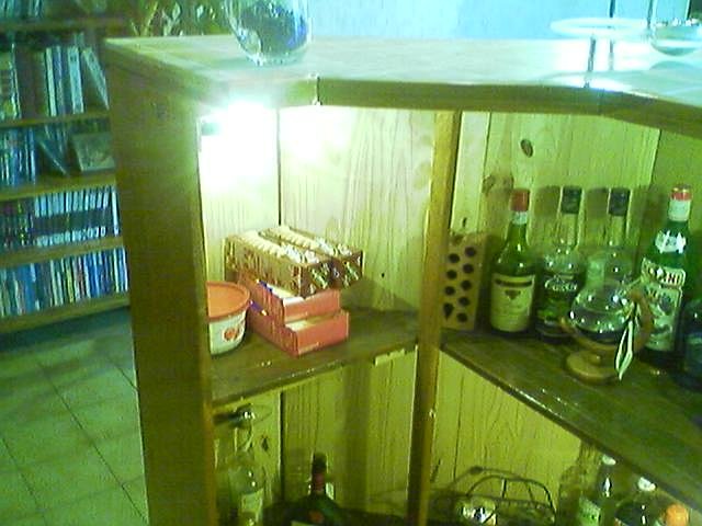 Pour bien voir à l'intérieur de mon bar, j'ai mis 4 ampoules de 25 W sur les côtés commandées par un interrupteur.