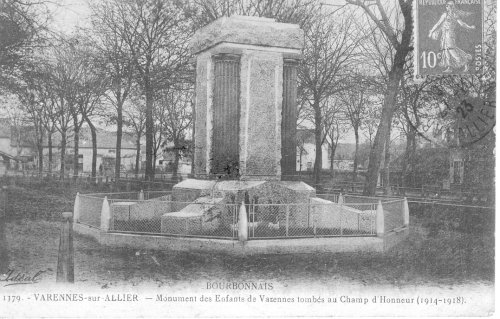 Monument des Enfants de Varennes Tombés au Champ d'Honneur 1914-1918 (éditeur Idéal, postée en 1923)